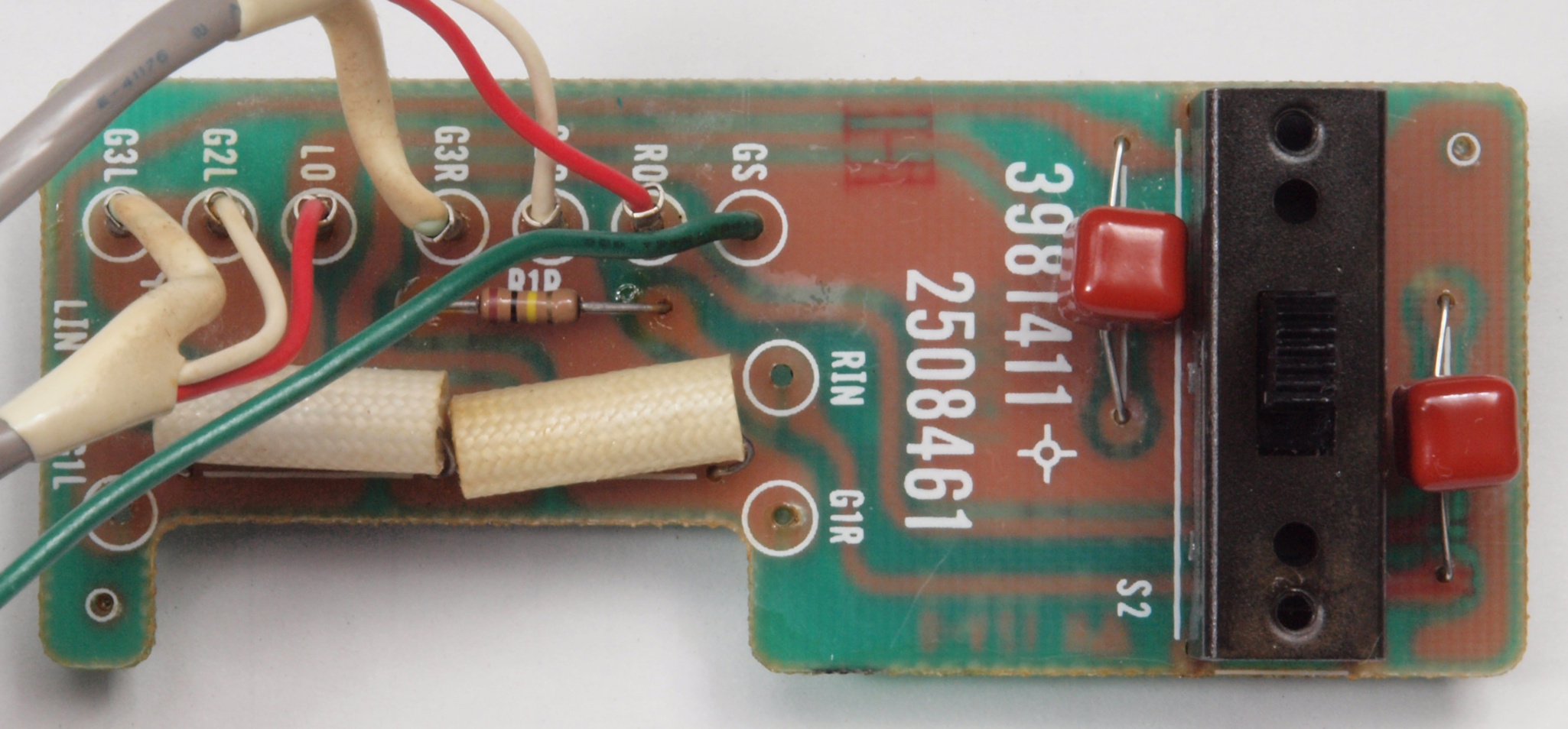 C74. 修理中 入力RCA端子基板裏 L側もW−SWにする為、基板改造。