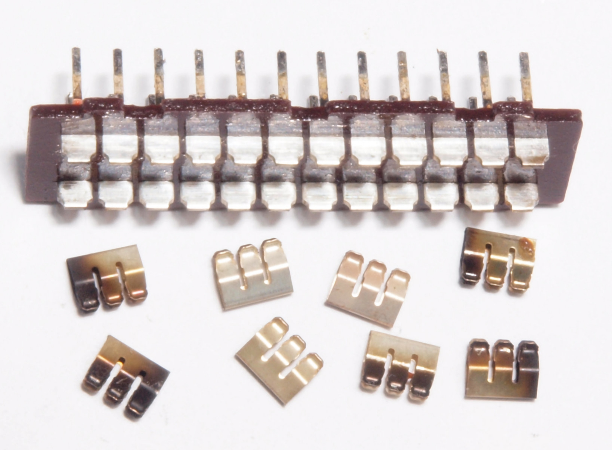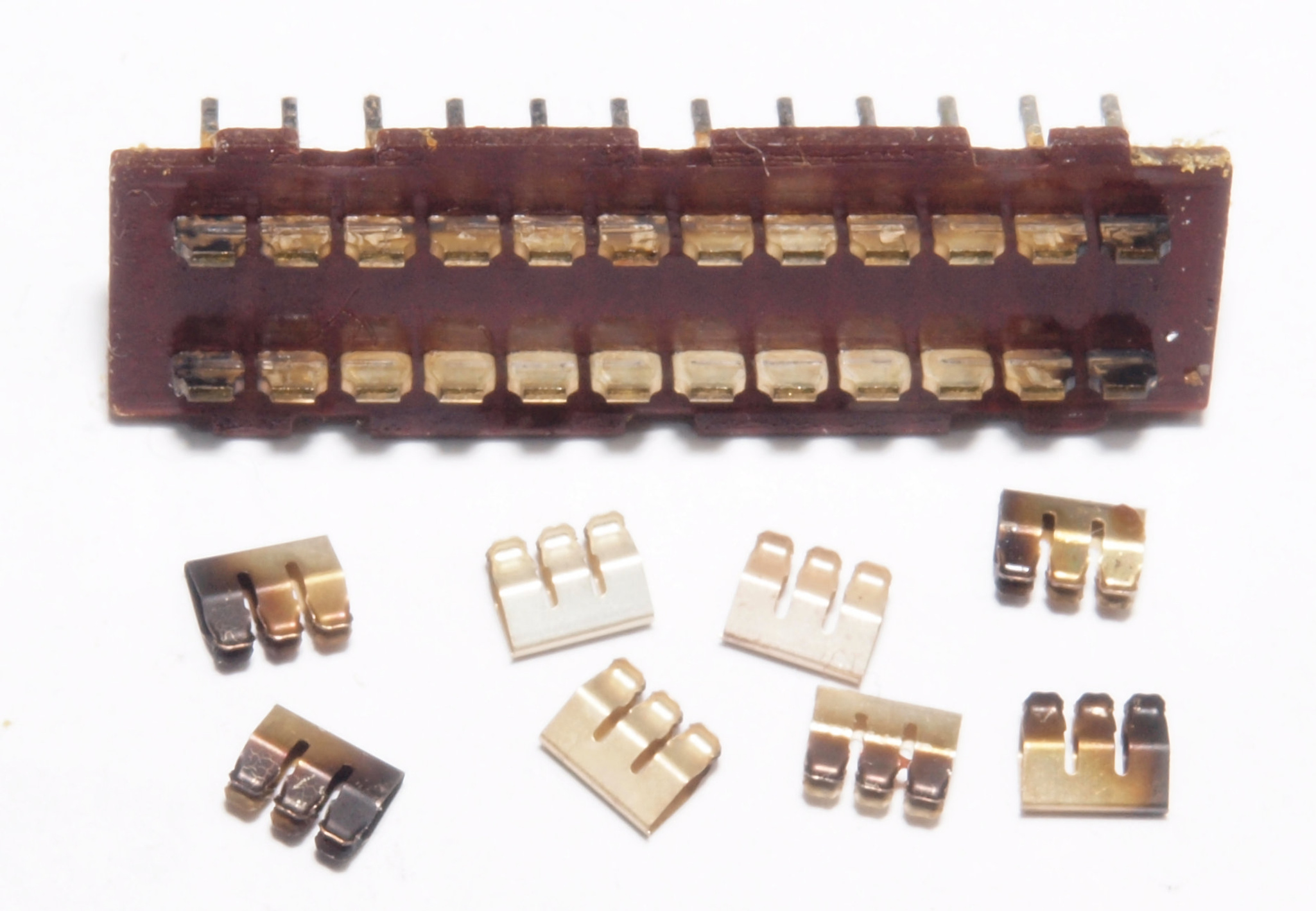 CE3. 交換した部品、接点が酸化したSP接続リレー。僅かに光っている所が通電部分。