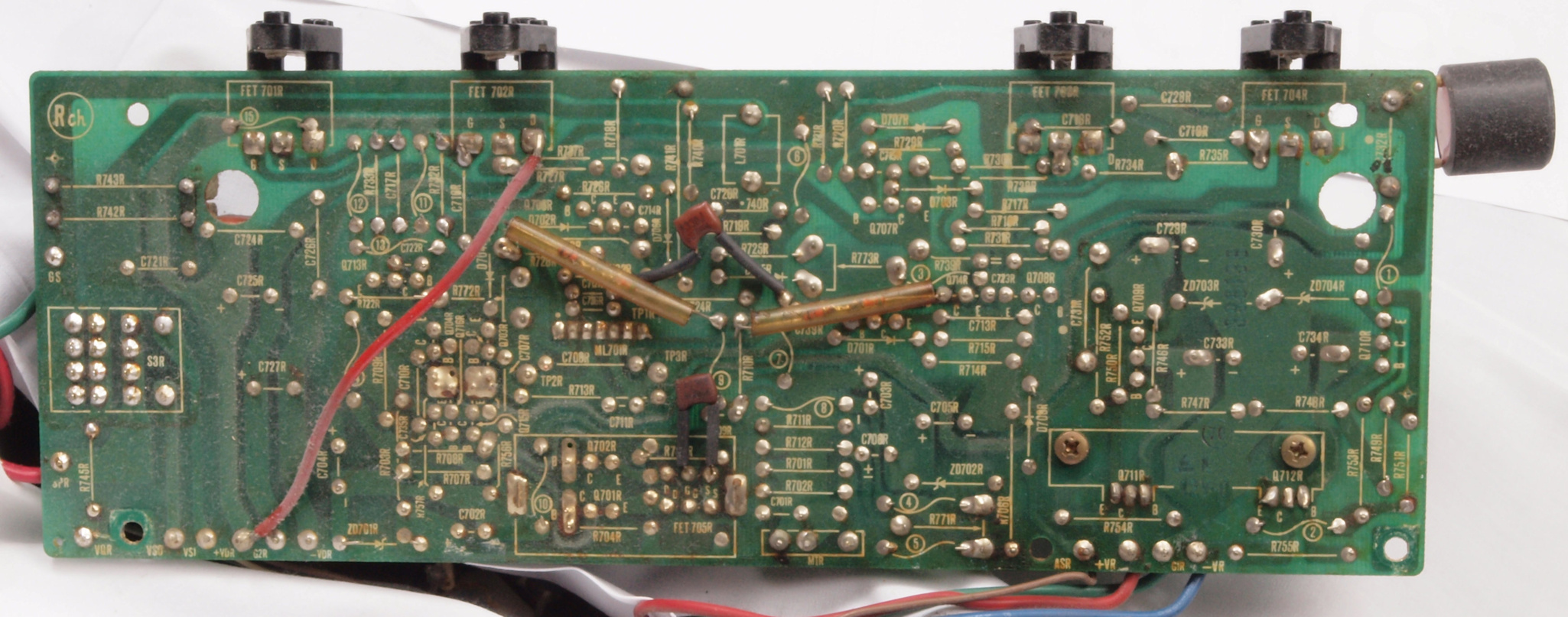 C15. 修理(半田補正)後 R側ドライブ基板裏 半田を全部やり直す。 普通はこれで完成。
