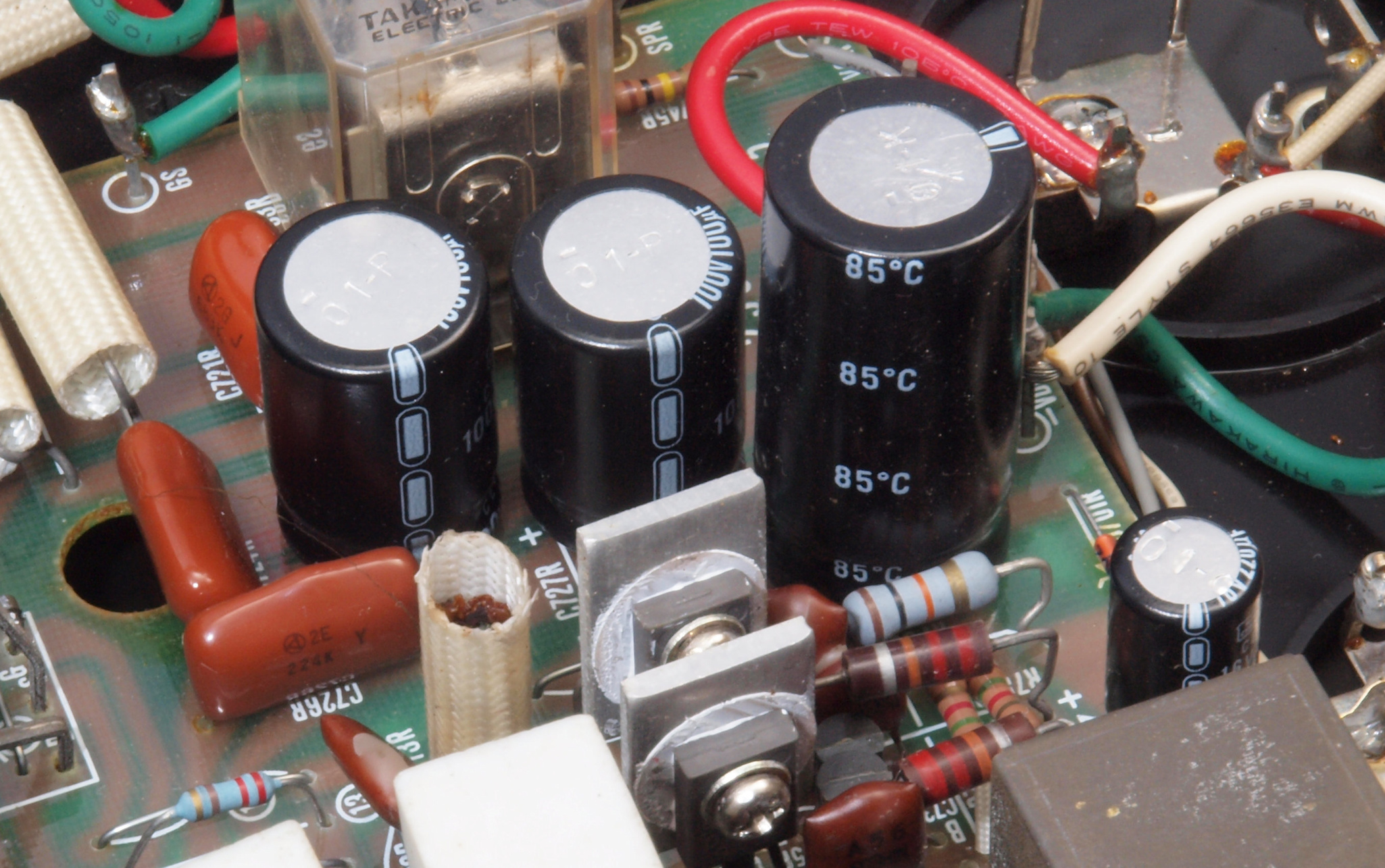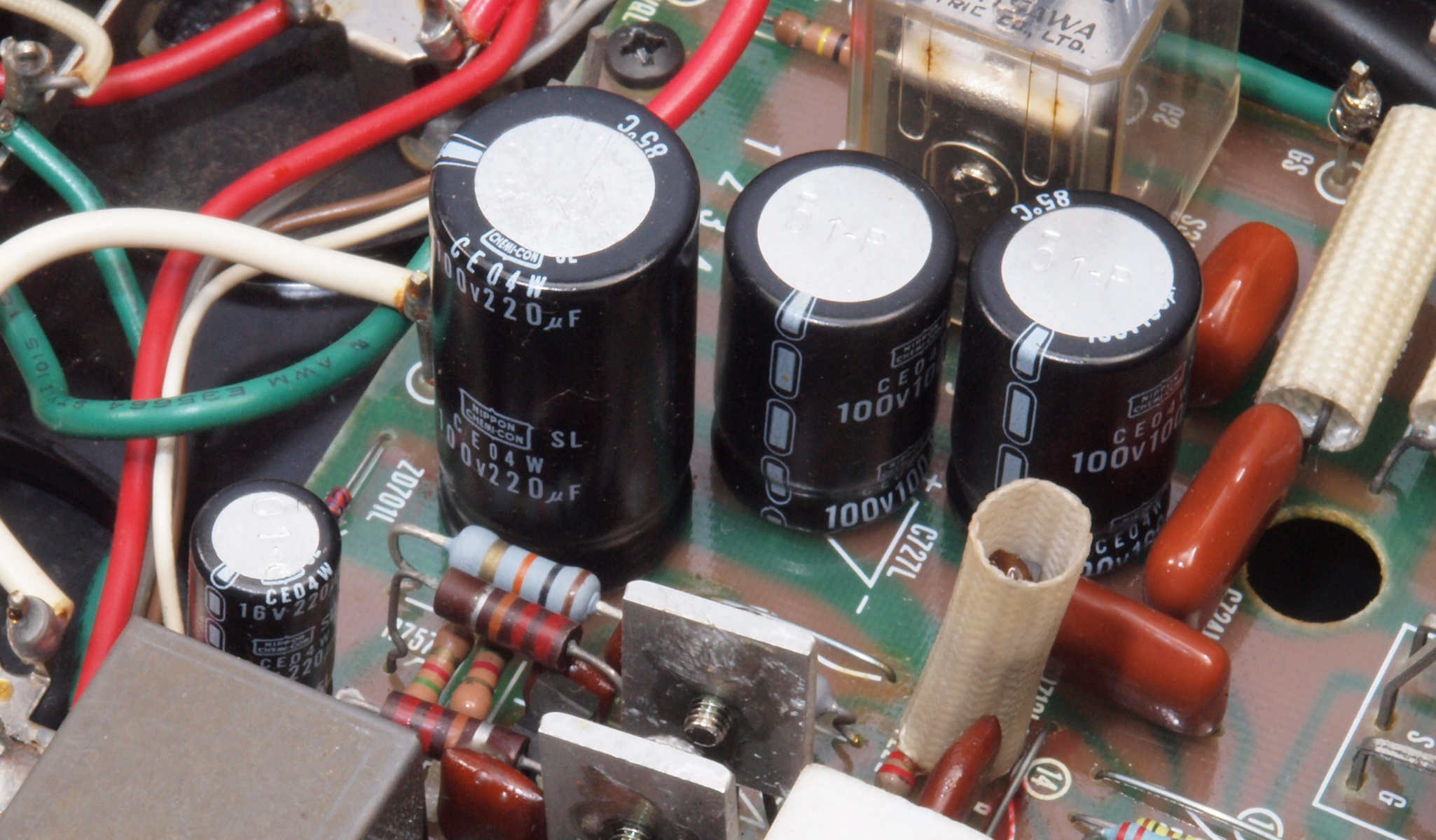 A52. 点検中 電解コンデンサー外観比較、220μ/100V