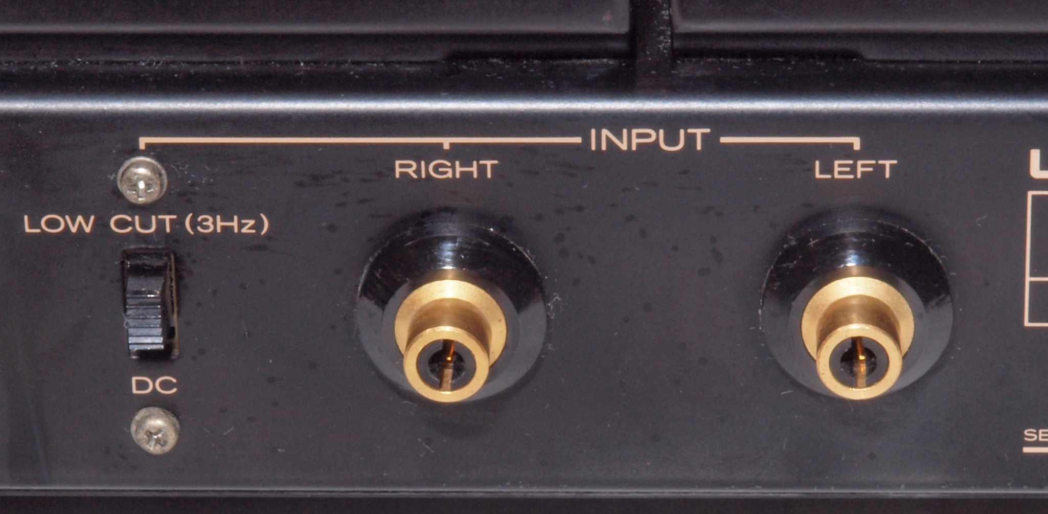 C77. 修理前 入力RCA端子基板取付。 曲がっている。