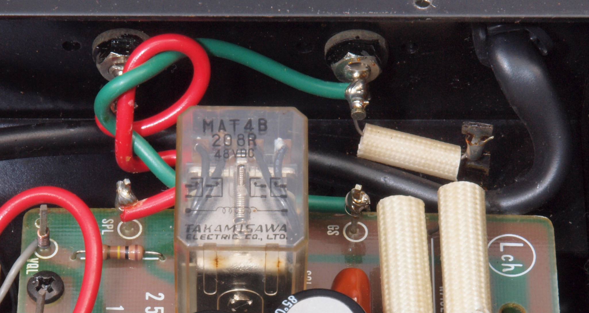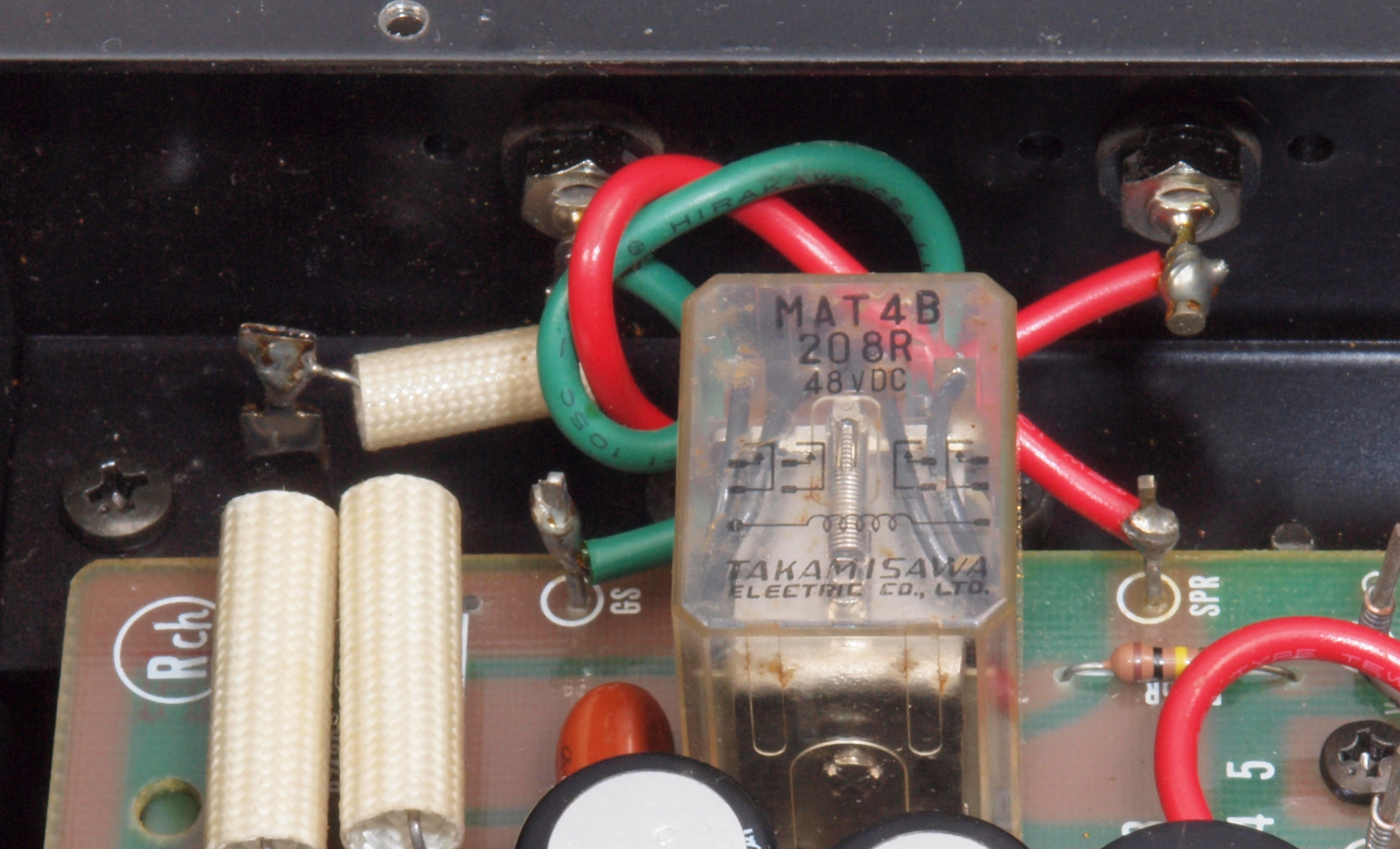 A76. 点検中 R−SP端子。 WBT−0735に交換可能です、但し既存の取り付け穴が見えます。