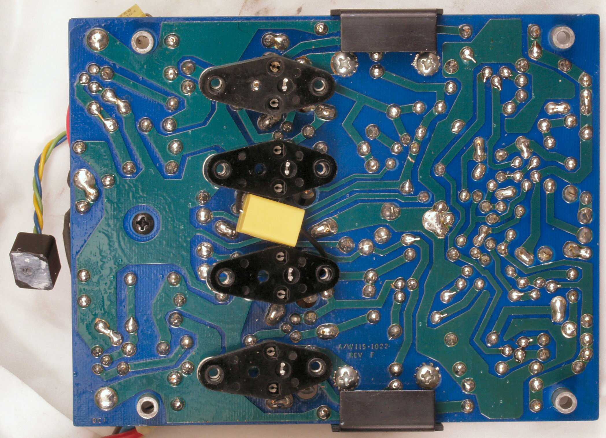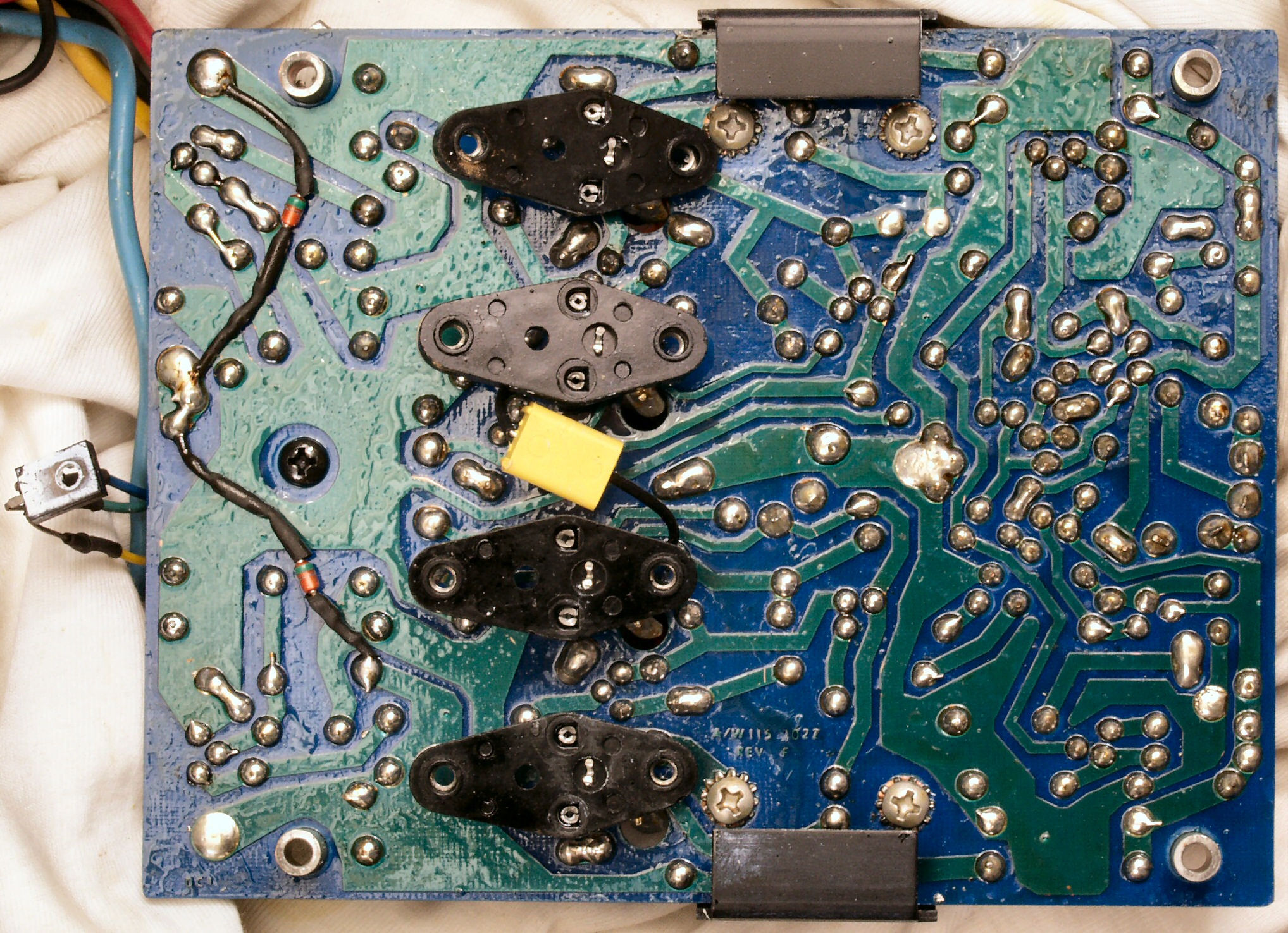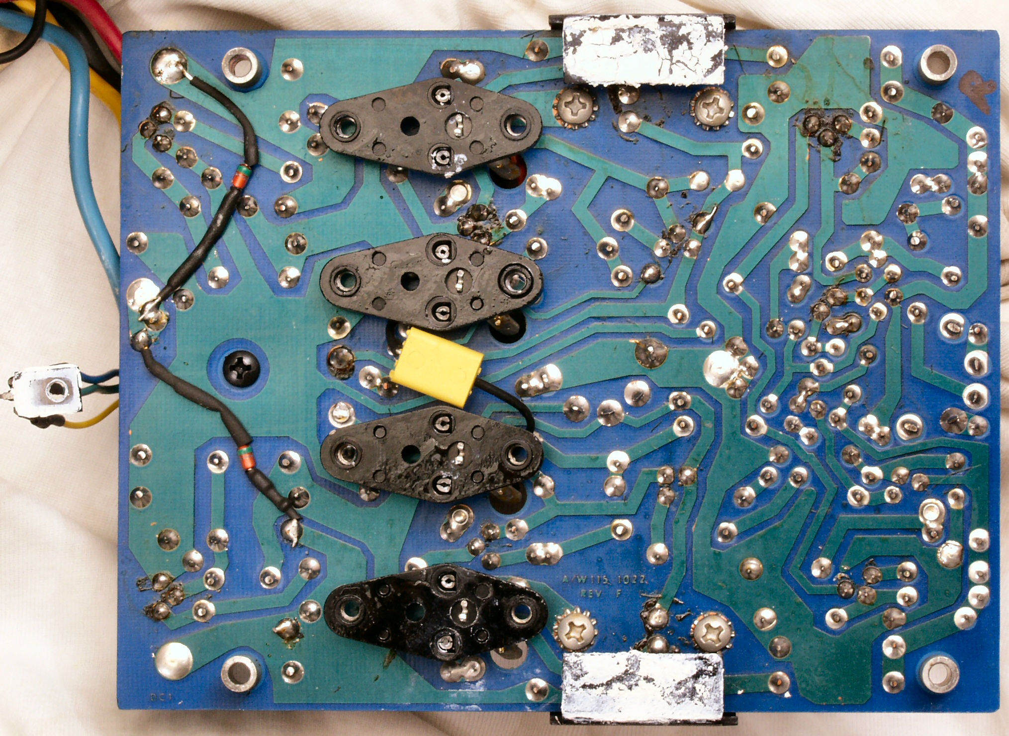 | C−4D. 修理(半田補正)後 VU基板裏,、腐食した銅箔はメッキ線で補修する。 | ||||||||||||||||||||||||||||||