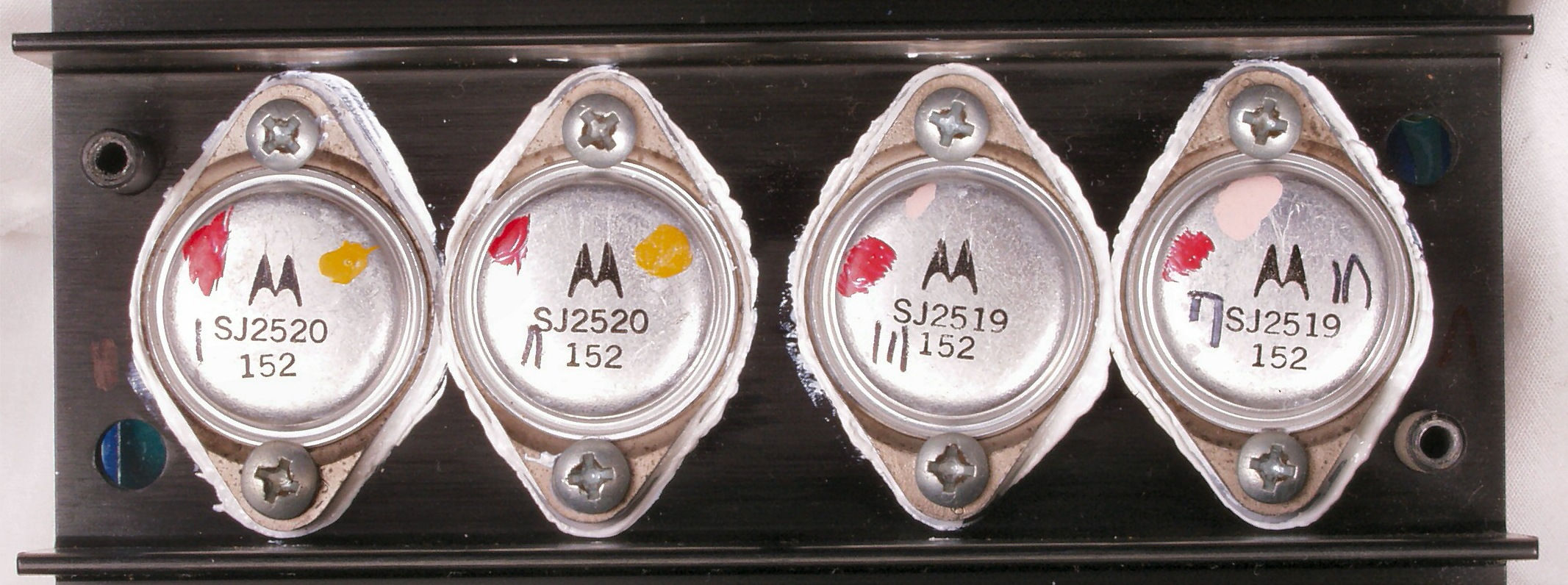 | C−2A−1. 修理中 L側終段TR(トランジスター)を外した所、シリコングリスが少ない | ||||||||||||||||||||||||||||||