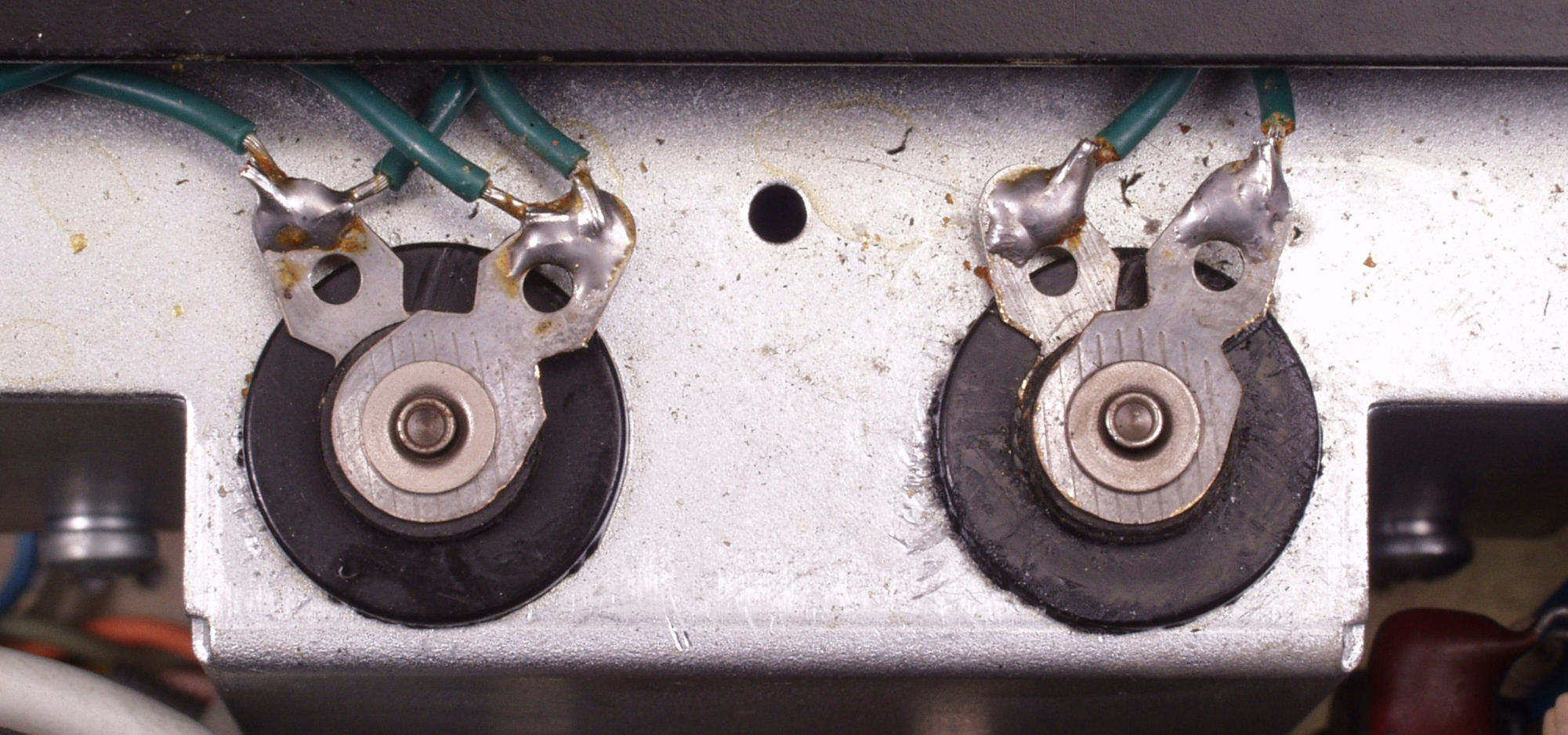 | C−1A−2. 修理中 R側終段放熱器、ここにも接点復活材? | ||||||||||||||||||||||||||||||
