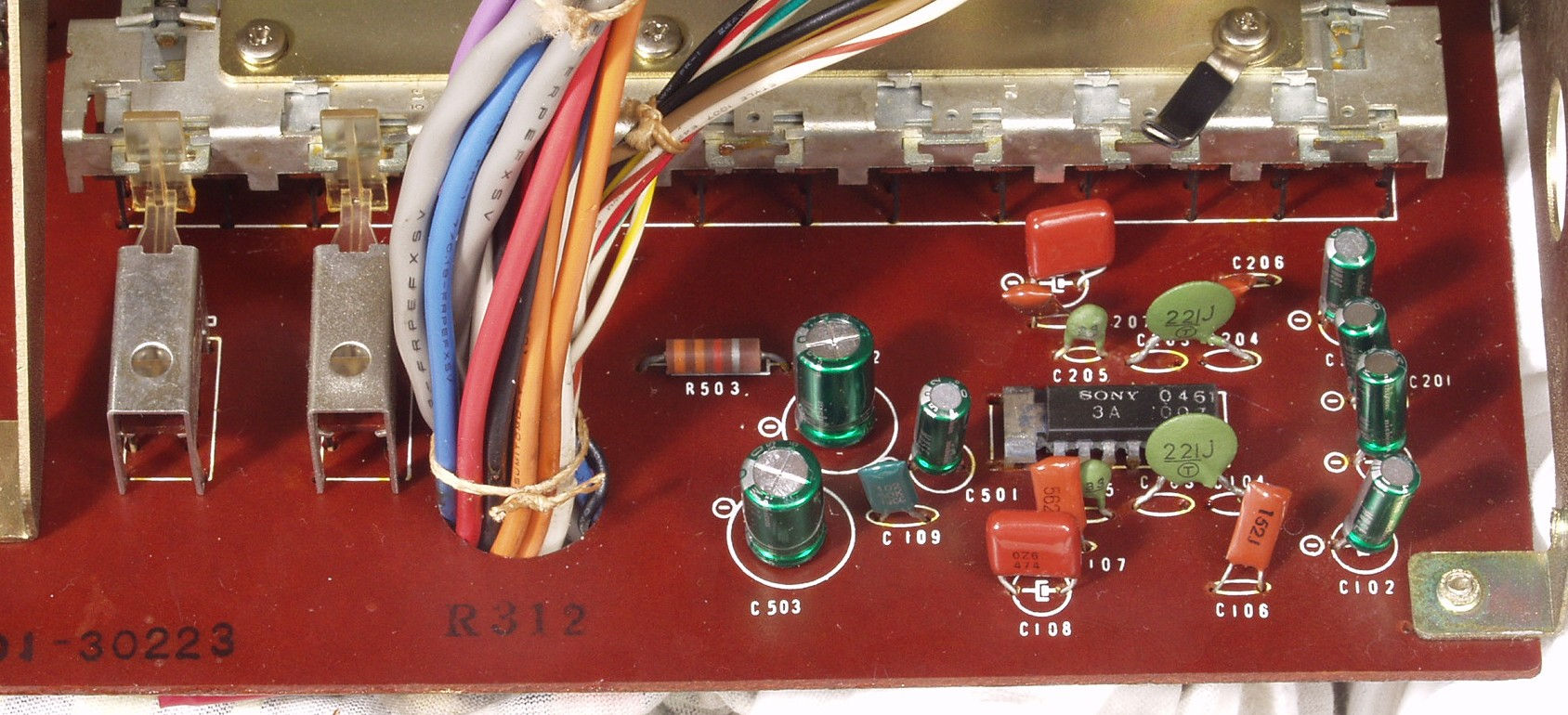 | C4B. 修理後 EQ−AMP&SW基板 電解コンデンサー7個、フイルムコンデンサー2個交換交換 | ||||||||||||||||||||||||||||||||||||||||||||||||||||||||||||||||||||