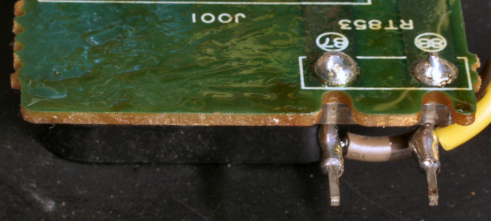 C−3J. 修理(半田補正)後 電源コンセント基板裏基板ラッピング。 半田を流し込む。