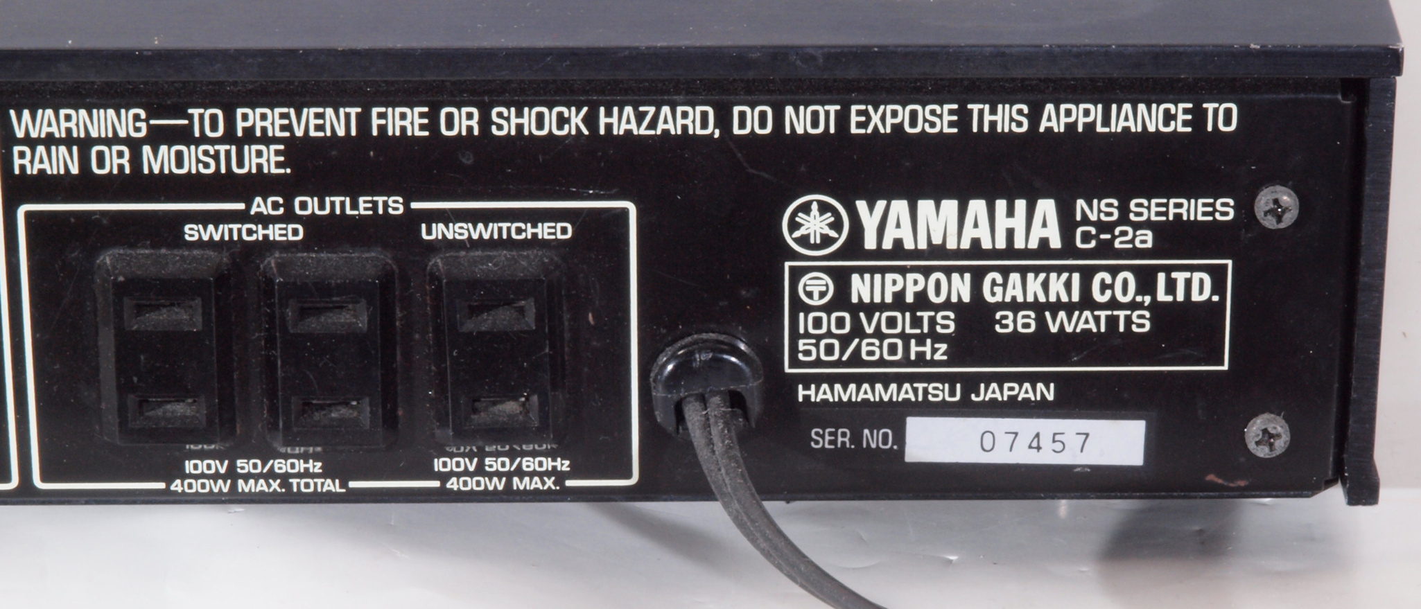 E. 調整・測定 F. 上位測定器による 調整・測定 F. 修理費(改造費) 140,000円 オーバーホール修理。 Y. ユーザー宅の設置状況 S. YAMAHA C−2a の仕様(カタログ・マニアルより) |