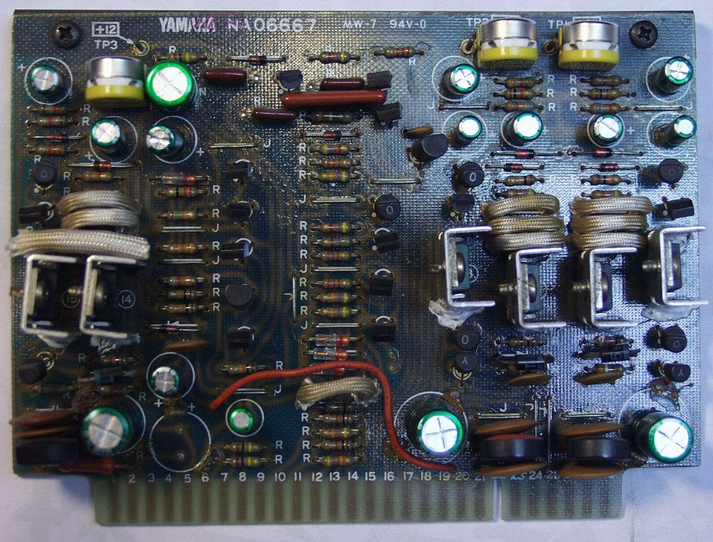 | C2B. 修理後 R側ドライブ基盤 半固定VR4個、電解コンデンサー3個、フィルムコンデンサー7個交換 | ||||||||||||||||||||||||||||||||||||||||||||||||||||