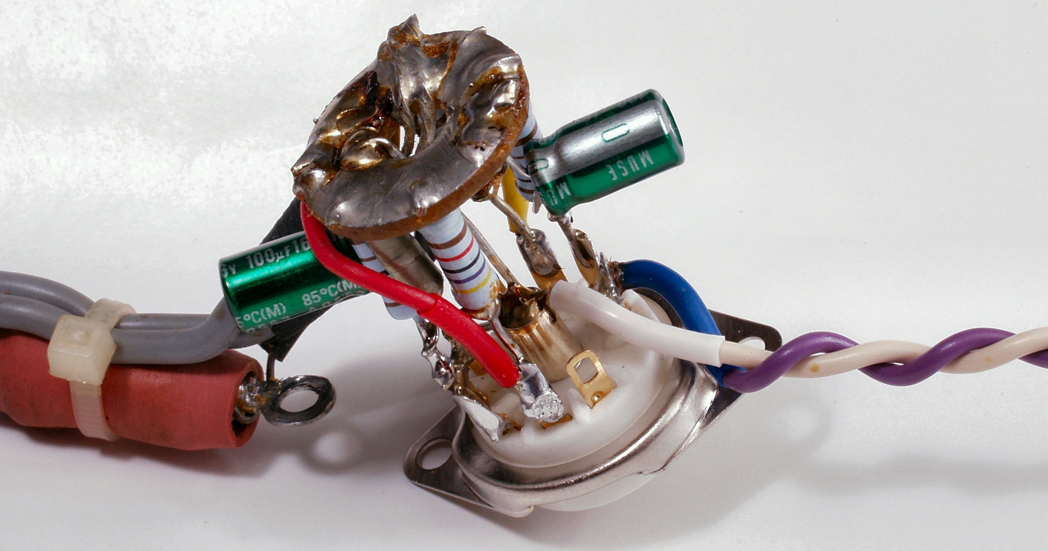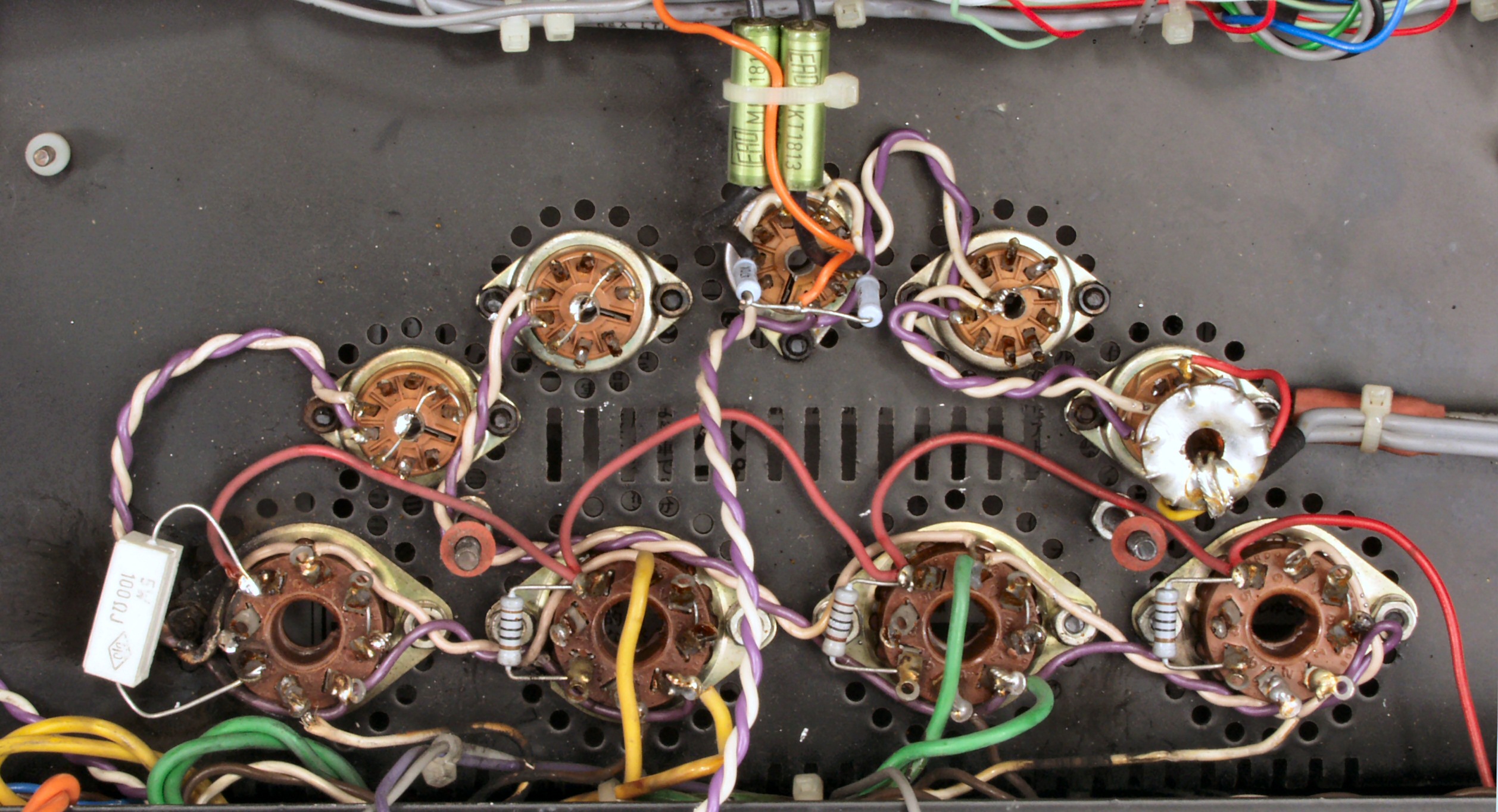 | C−5B. 修理後 初段AMP「12AX7」MTソケット配線 電解コンデンサー2個交換 |