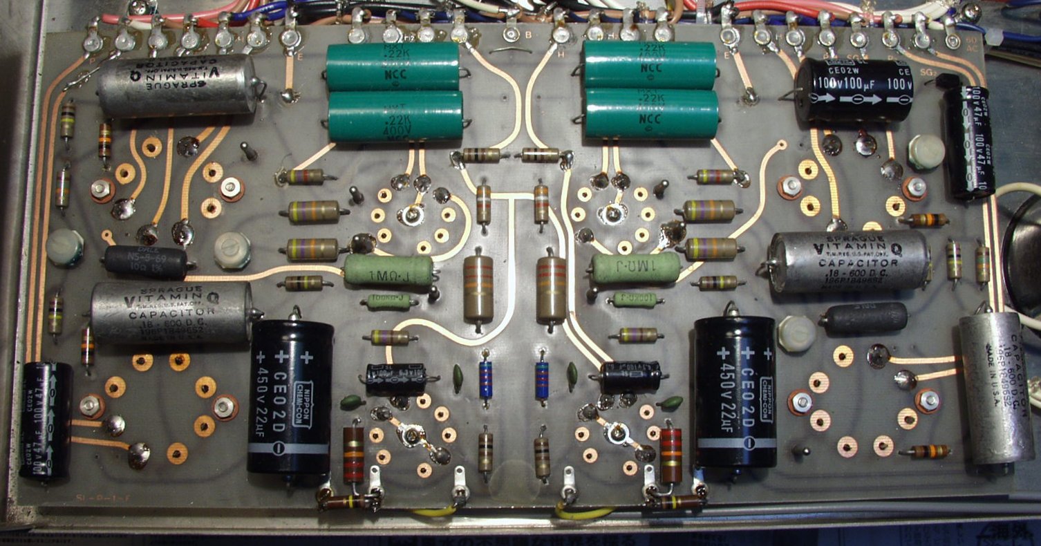 C1C. 修理後  AMP基板 KT88のソケットは、放熱の為に、十分に半田を盛る