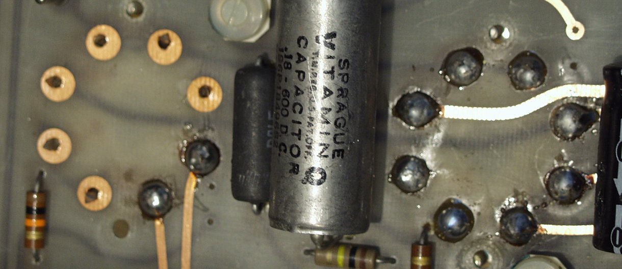 KT−88ソケット周りの配線(銅泊)が細く、且つ、半田盛りも無く、放熱への配慮が無い